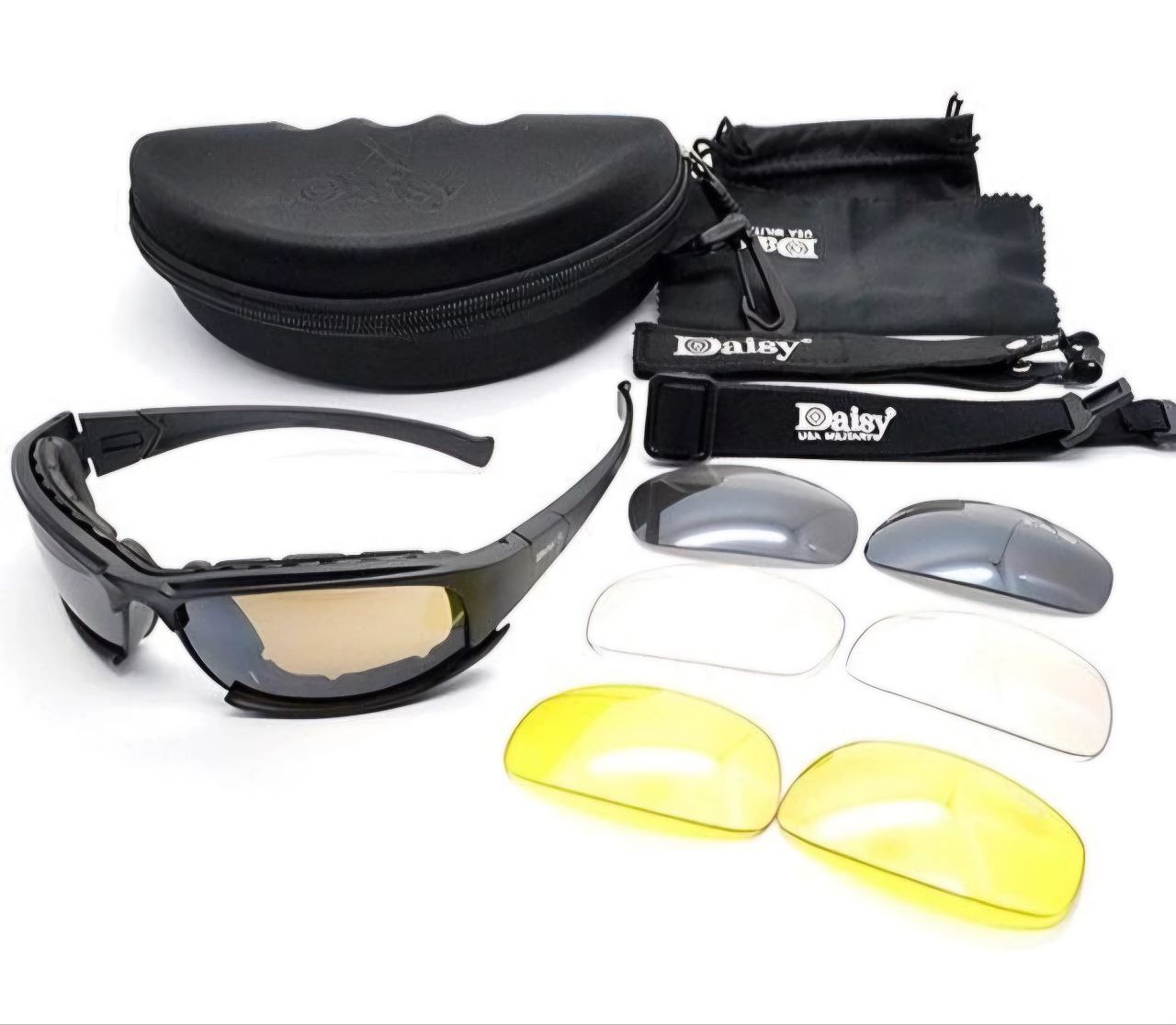 این عینک دارای چهار لنز مختلف شامل دید در شب، دید آفتابی، دید در محیط ابری، دید در مقابل تابش مستقیم بوده که شما می توانید بر حسب آب و هوای موجود و مورد استفاده خود هر یک از لنزها را روی فریم آن نصب و استفاده کنید.